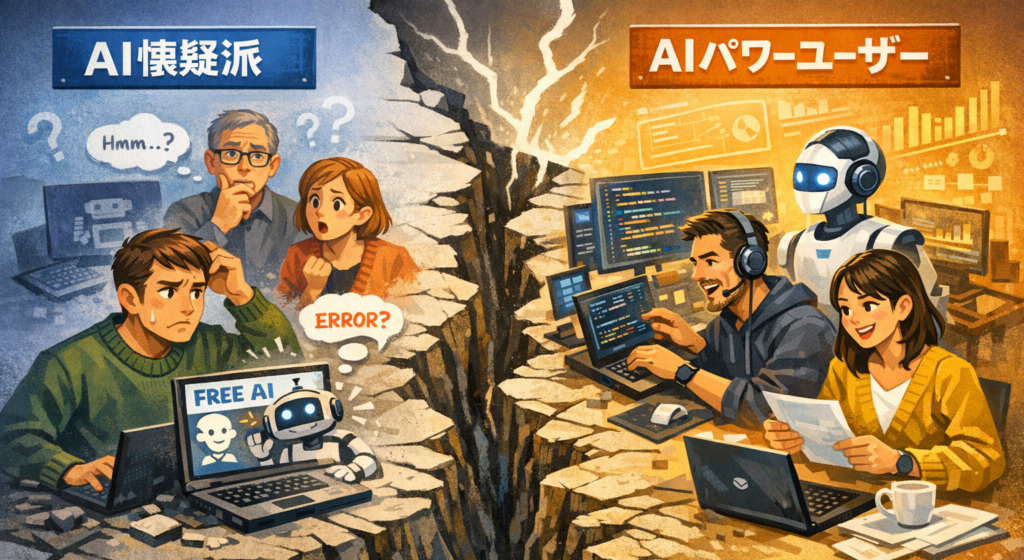 この視点は、日本語圏の読者にとっても重要です。AIの評価が割れる背景には、思想や立場の違いだけでなく、単純に利用環境の違いがある。現場ではすでに変化が起きているのに、その変化が広く共有されていない可能性があります。